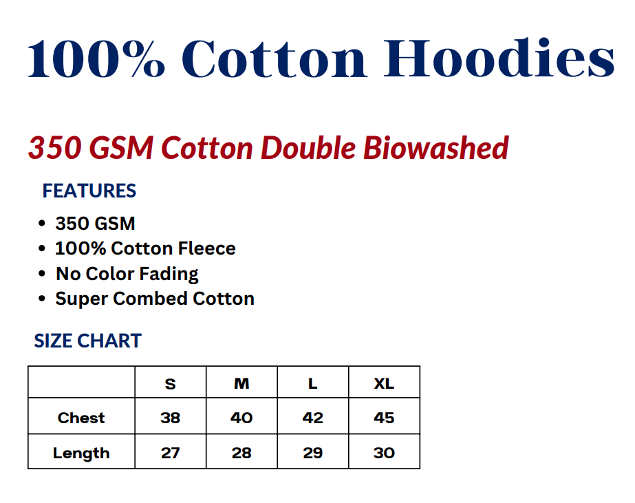 Stay warm and comfortable with the Mack and Max™ 350 GSM Cotton Hoodie, crafted from super combed 100% cotton fleece for a plush and cozy feel. This double biowashed hoodie is designed to be colourfast and pre-shrunk, ensuring enduring softness and long-lasting vibrant color. Available in classic Black and Beige shades, it offers a relaxed fit with a detailed size chart providing measurements from Small to XL. The perfect choice for everyday winter wear, Mack and Max™ hoodies promise durability, comfort, and style, with more color options coming in the next season
